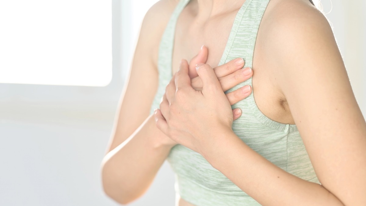 - Ajoelhe-se ao lado da vítima, na altura dos ombros dela, e localize o centro do tórax, entre os mamilos;
